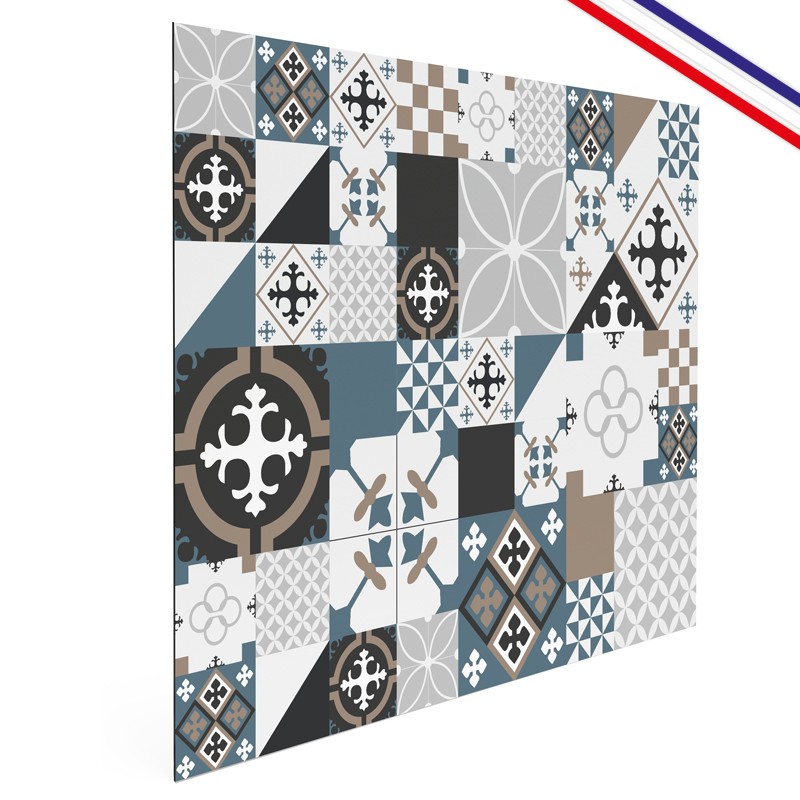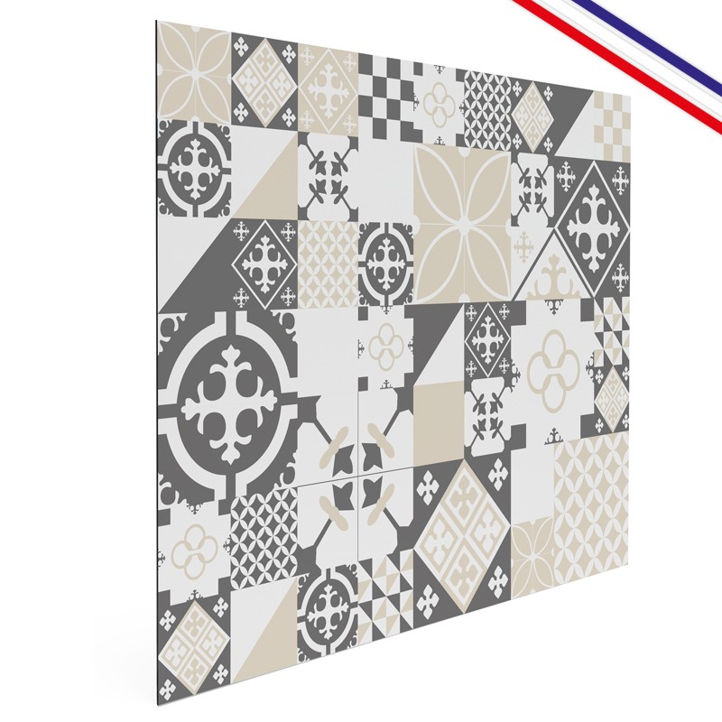 Des couleurs douces et naturelles pour cette crédence aluminium style carreaux de ciment.