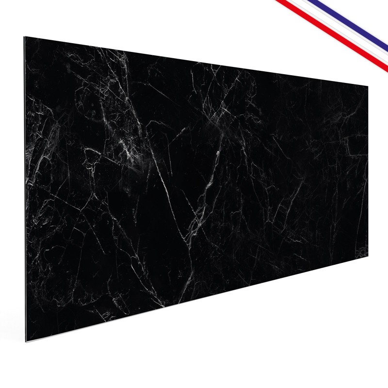 Optez pour l’élégance intemporelle avec la crédence en aluminium “Marbre Foncé”.