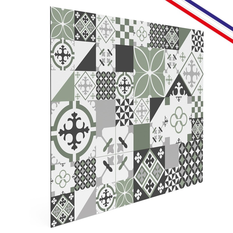 Des couleurs douces et naturelles pour cette crédence aluminium style carreaux de ciment.