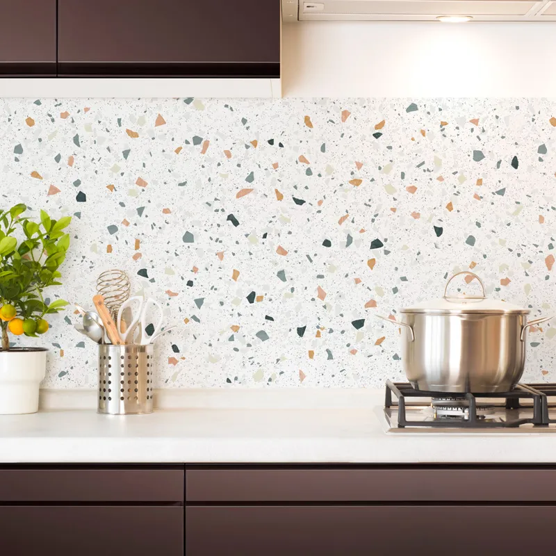 Disponibles dans de nombreux motifs tendance (crédence terrazzo, marbre, industriel, carreaux de ciment, couleurs unies…), nos crédences aluminium s’installent en quelques minutes pour un rendu durable, élégant et personnalisable selon vos dimensions.