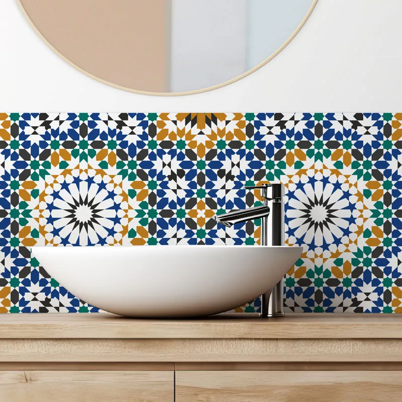 Transformez votre salle de bain sans travaux avec nos crédences salle de bain en PVC adhésivesfabriquées dans notre atelier d'Agen (47-France) à la commande.