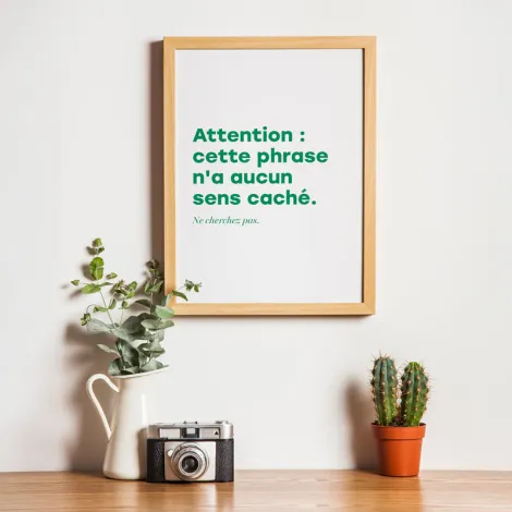 Disponibles en plusieurs formats, nos affiches peuvent se combiner entre elles pour composer une galerie murale unique qui correspond à votre style. Ambiance humoristique, conviviale ou graphique : nos collections s’adaptent naturellement à votre intérieur.