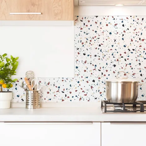 La crédence Marbre Nuance s’inspire des pierres naturelles aux veinures aériennes.