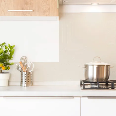 Appliquez la colle PU en cordons réguliers, positionnez la crédence, puis finalisez avec un joint silicone entre le meuble et la crédence pour une étanchéité parfaite.