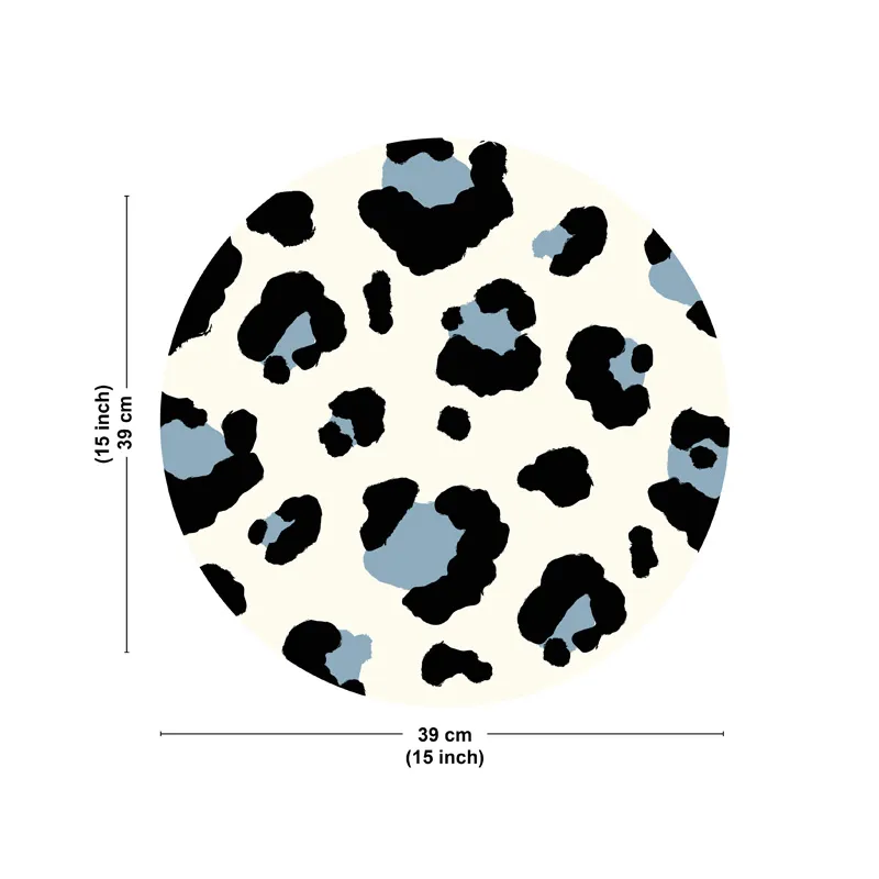 Ce motif léopard revisité mêle taches noires profondes, touches bleu ardoise et fond blanc cassé pour un look graphique, audacieux et résolument moderne.