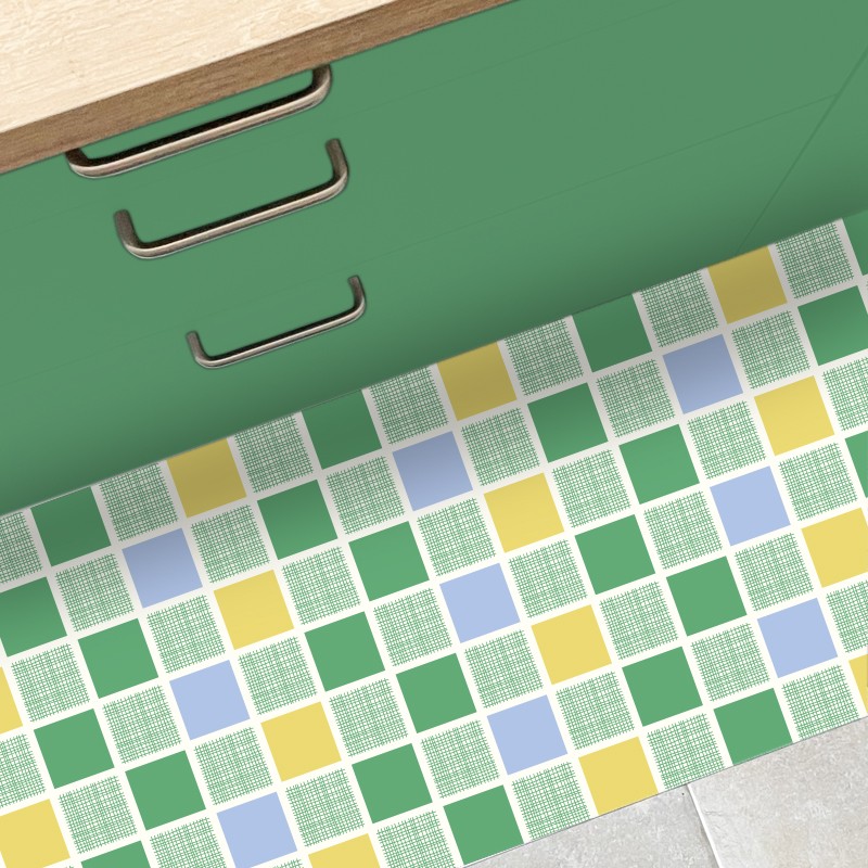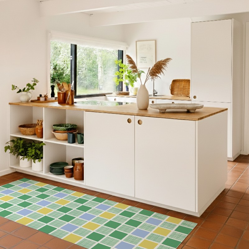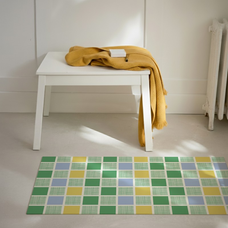 Avec notre tapis vinyle graphique Gridda, u design géométrique coloré et contemporain