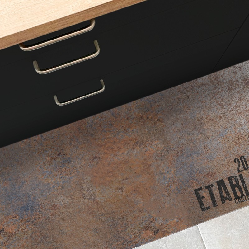 Ce tapis vinyle effet Métal rouillé est un must have pour les amateurs du style industriel ou vintage.